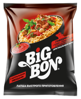 Биг Бон лапша 75гр говядина + соус томатный с базиликом (пакет) 1*48шт