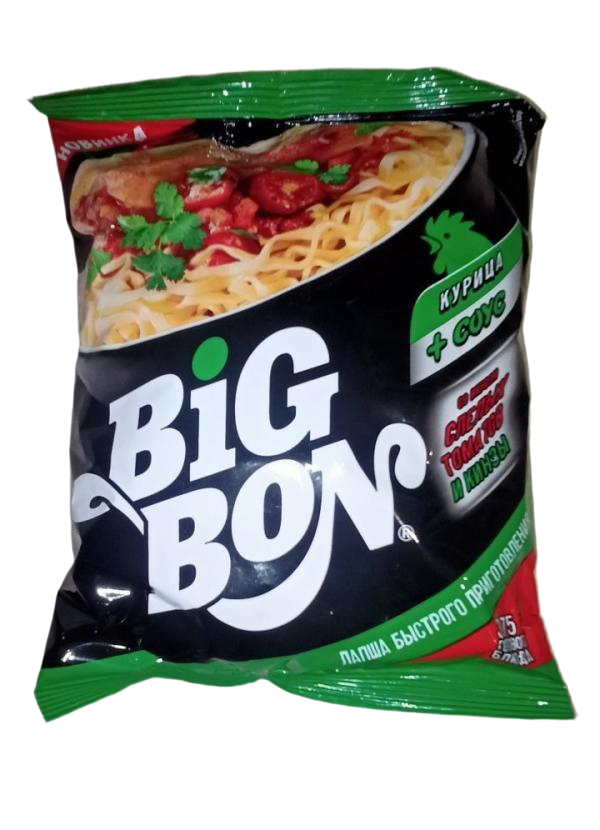 Биг Бон лапша 75гр курица + соус томатный и кинза (пакет) 1*48шт