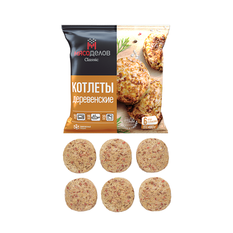 Котлеты Деревенские "Мясоделов" 480 гр. шт. пленка кор. S зам.