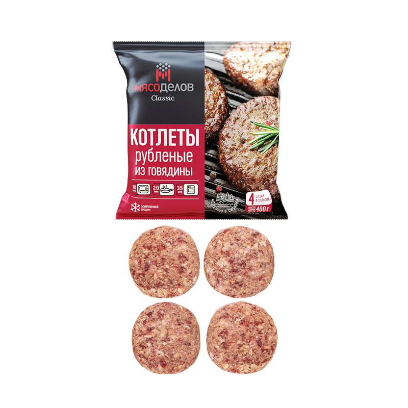 Котлеты Рубленые из говядины "Мясоделов" 400 гр.шт. пленка кор. S зам.