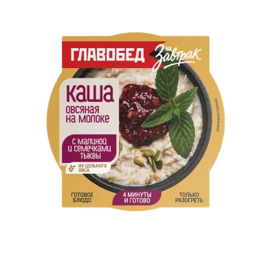 Каша овсяная на молоке с малиной и семечками тыквы 0,25 кг на завтрак ТМ Главобед 1/8шт