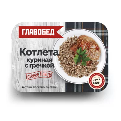 Котлета куриная с гречкой. Второе обеденное замороженное блюдо, 0,3 кг, ТМ Главобед 1/8шт