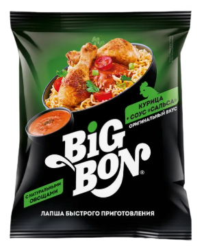 Биг Бон лапша 75гр курица + соус сальса (пакет) 1*48шт