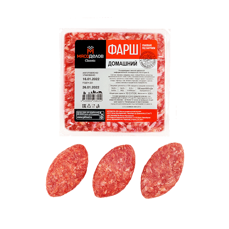 Фарш Домашний "Мясоделов" 500 гр. шт. ТФ3 в/у кор. S зам.