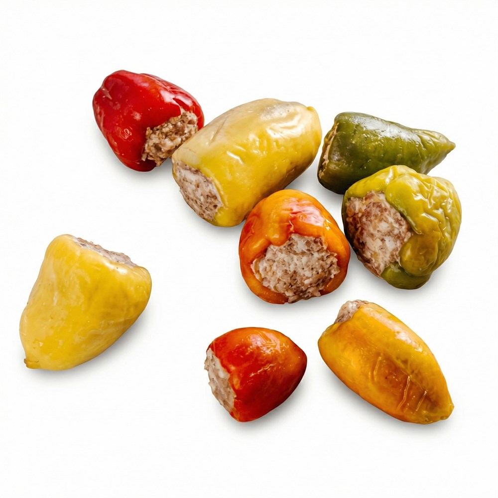 Состав: свинина, говядина, перец болгарский, лук репчатый, яйцо, рис, соль, перец, вода
