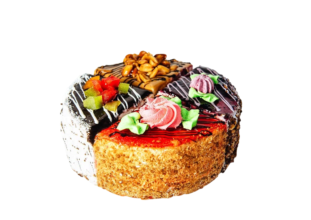 Медовый бисквит с кремом с вареной сгущенкой, шоколадный бисквит со сливочным кремом, классический бисквит со сливочно-клубничным кремом, шоколадный бисквит со сливочно-смородиновым кремом